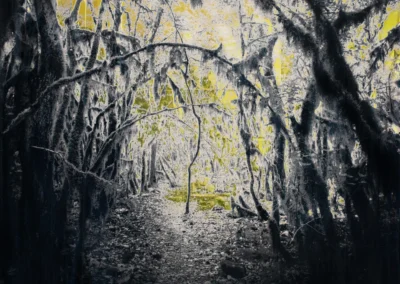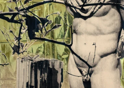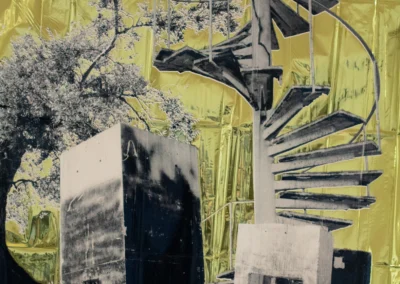 Tirage jet d’encre pigmentaire, encres acryliques, graphite, poudre de metal, pigment iridescent – 40 cm x 50 cm – 2025